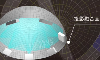 熒幕為半球形,由多臺投影設備投射的畫面無縫融合組成。